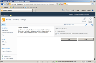 Specify toolbar settings using ServBus WebForm.