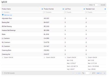 • New igTreeGrid - Display data in a tree-like tabular structure.