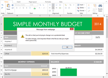 A protected spreadsheet created using DevExpress ASP.NET.